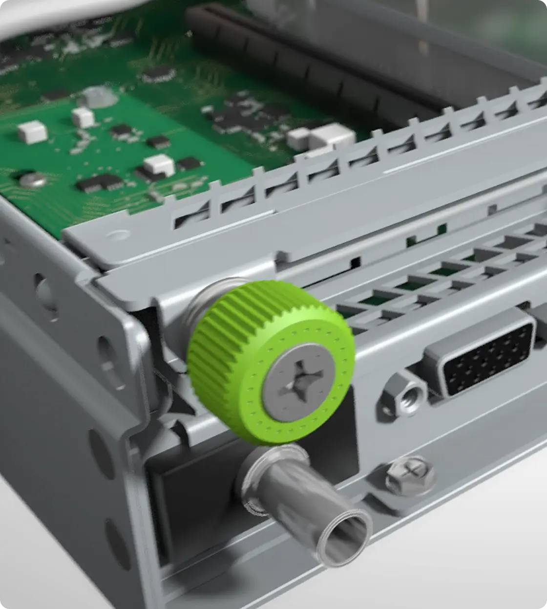Tool-free PCB or panel installation and removal minimising loose hardware and saving time in server and electronics assemblies.